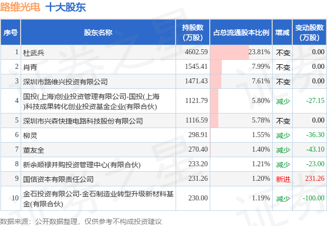 根据路维光电2025年一季报公布的十大股东详情如下: