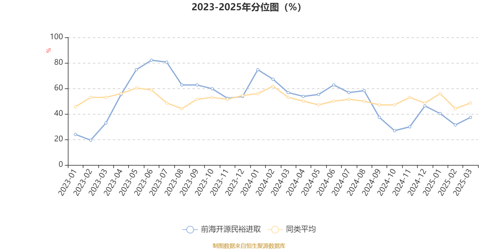 通过所选区间该基金净值增长率分位图,可以观察该基金与同类基金业绩比较情况。图为坐标原点到区间内某时点的净值增长率在同类基金中的分位数。