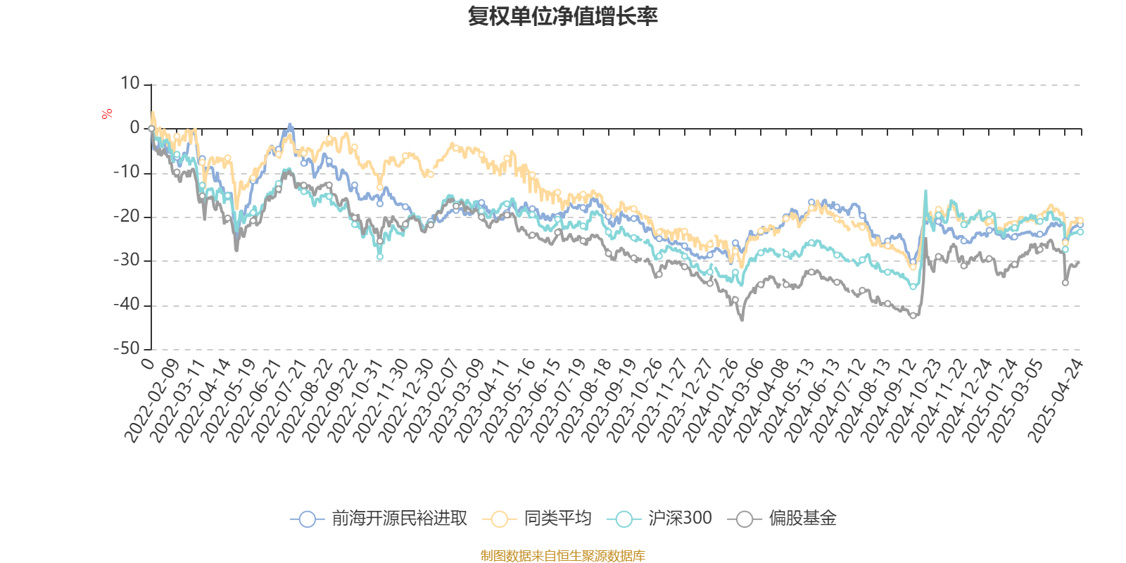截至4月24日,前海开源民裕进取近三个月复权单位净值增长率为3.67%,位于同类可比基金23/91;近半年复权单位净值增长率为-0.49%,位于同类可比基金33/91;近一年复权单位净值增长率为-1.46%,位于同类可比基金60/91;近三年复权单位净值增长率为-1.19%,位于同类可比基金38/66。