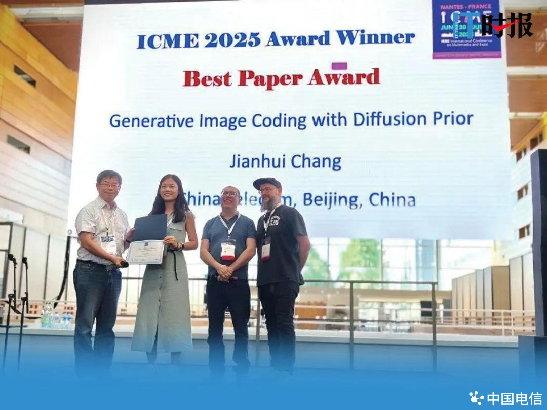 “Who’sChinaTelecom(谁是中国电信)”7月3日,在儒勒·凡尔纳的故乡——法国南特,低低的疑问声在2025国际多媒体与博览会议(ICME2025)颁奖现场不同角落里响起,台上的领奖者,是经过三轮严格盲评、击败全球3737篇投稿、拿下本届唯一“最佳论文奖”的年轻人常建慧,她的Affiliation(归属)写着“中国电信”。